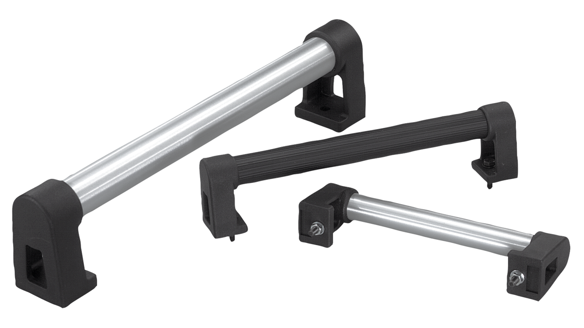 Maniglie tubolari in alluminio con supporti laterali in plastica, forma A