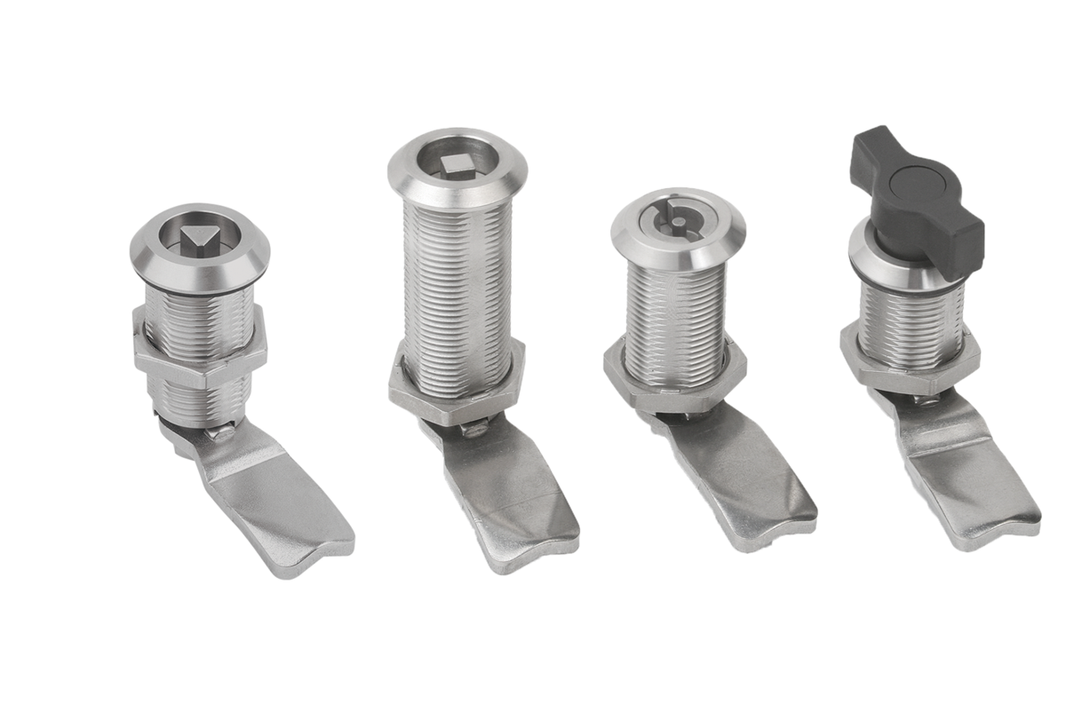 La serratura girevole può essere inserita preassemblata e ha un percorso di chiusura di 90°. Utilizzabile a destra o sinistra. Resistente all'acqua e alla polvere secondo IP65 a norma EN 60529.