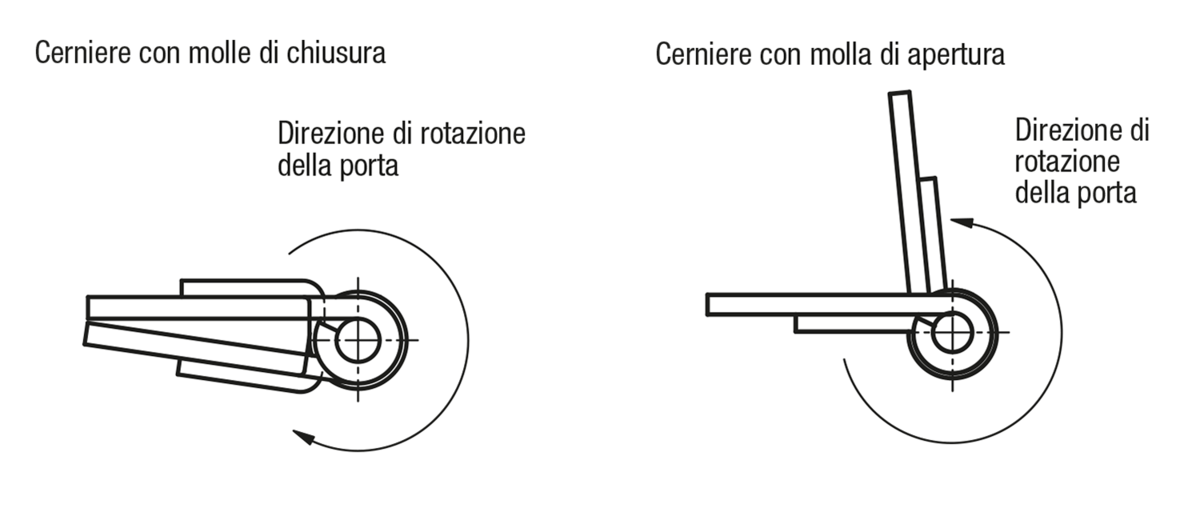 Le cerniere a oscillazione libera possono essere combinate con le cerniere a molla grazie alle dimensioni e all'aspetto identici.