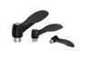 Componenti duri di plastica rinforzata con fibre di vetro e ghiera dentata in zinco pressofuso.