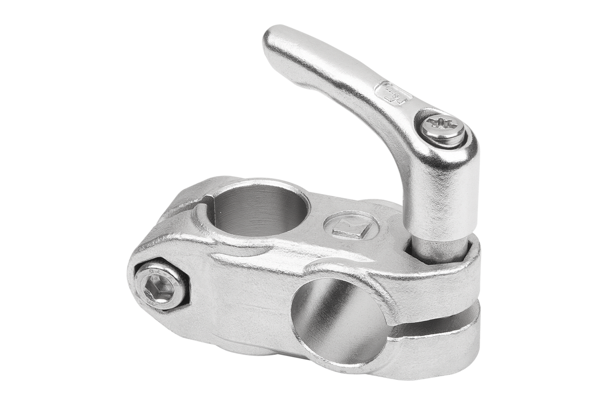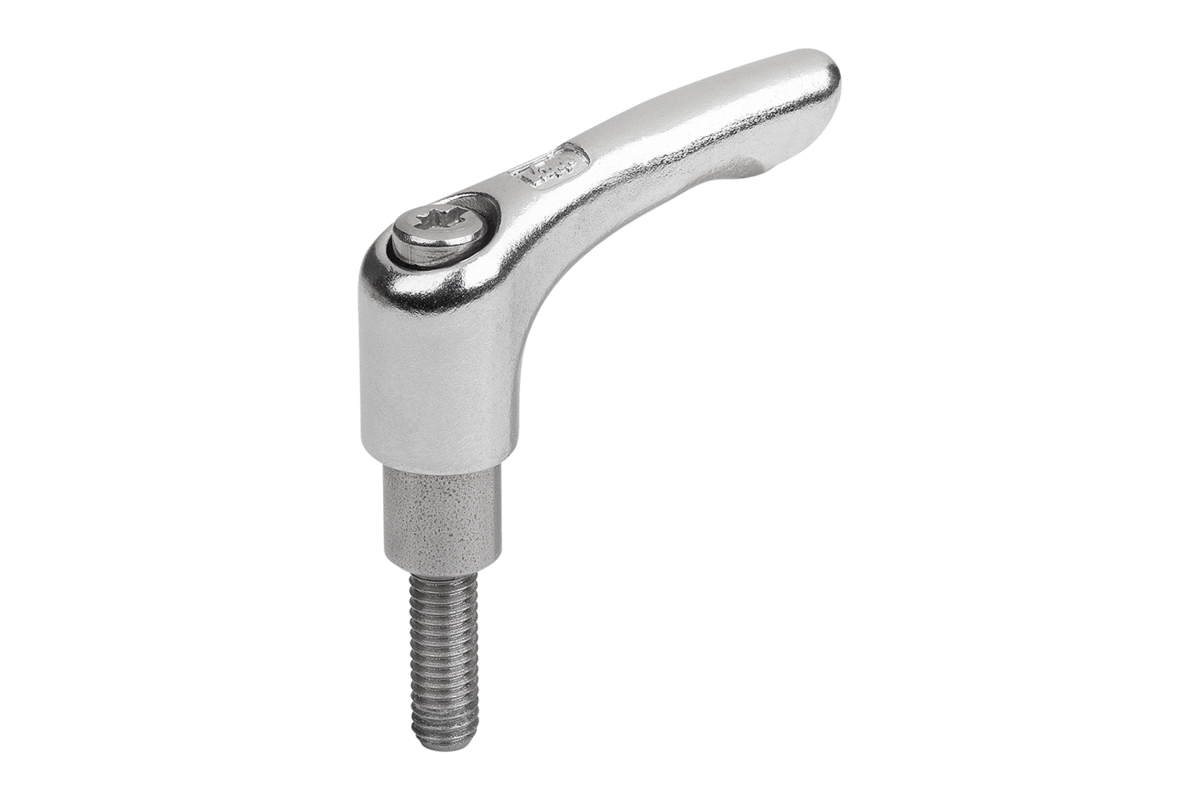 La maniglia a leva con collare allungato sostituisce, ad esempio, le viti per i raccordi dei tubi, consentendo di stringere e allentare il collegamento a vite senza l'ausilio di attrezzi.