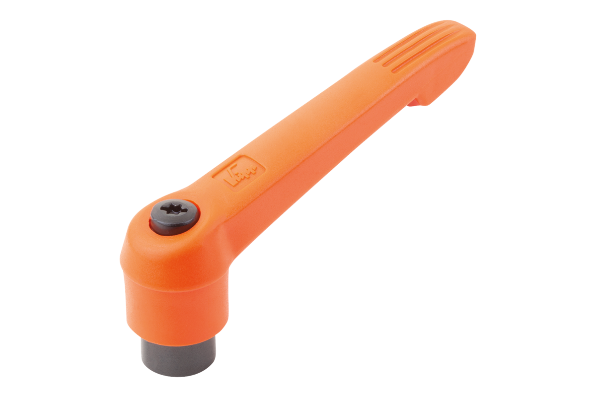 Impugnatura in plastica rinforzata con fibra di vetro e ghiera dentata in zinco pressofuso.