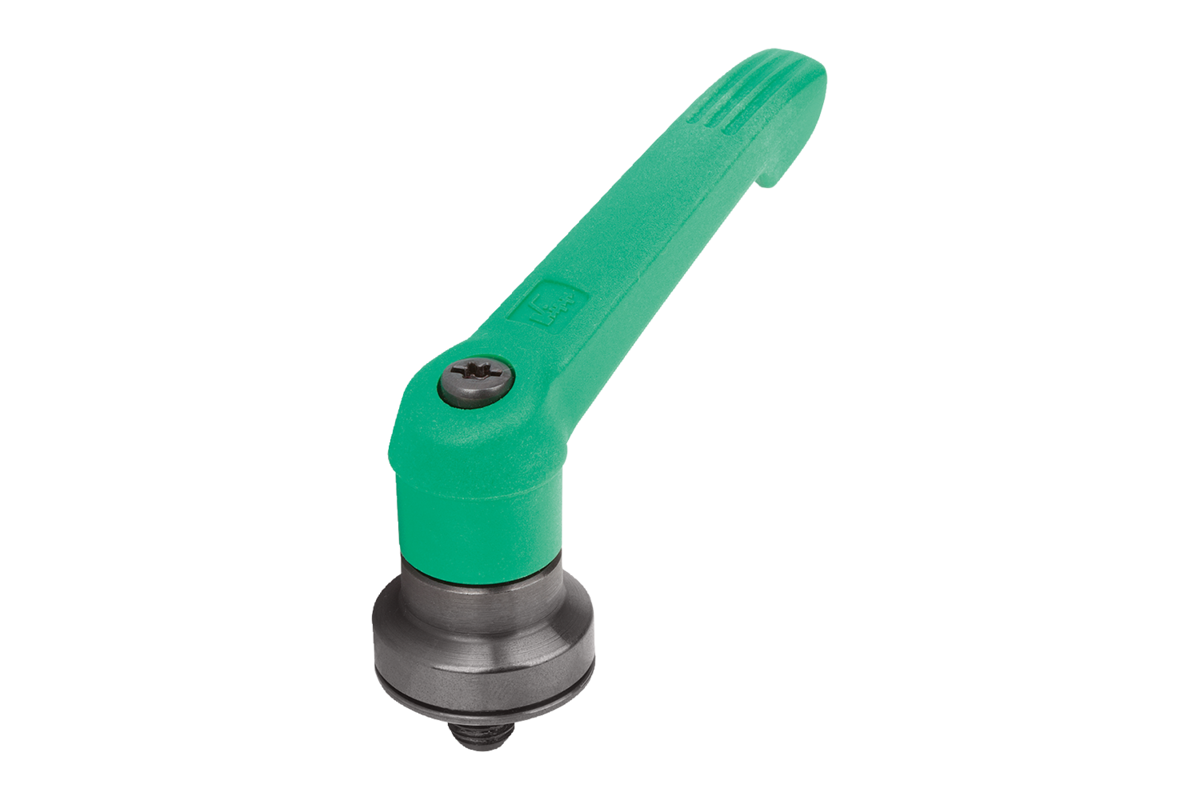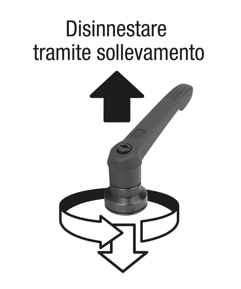 La leva rimane in posizione attraverso il blocco di una corona dentata, consentendo di fissare il pezzo. Il rilascio avviene sollevando la leva questa può essere posizionata e reinserita nella corona dentata.