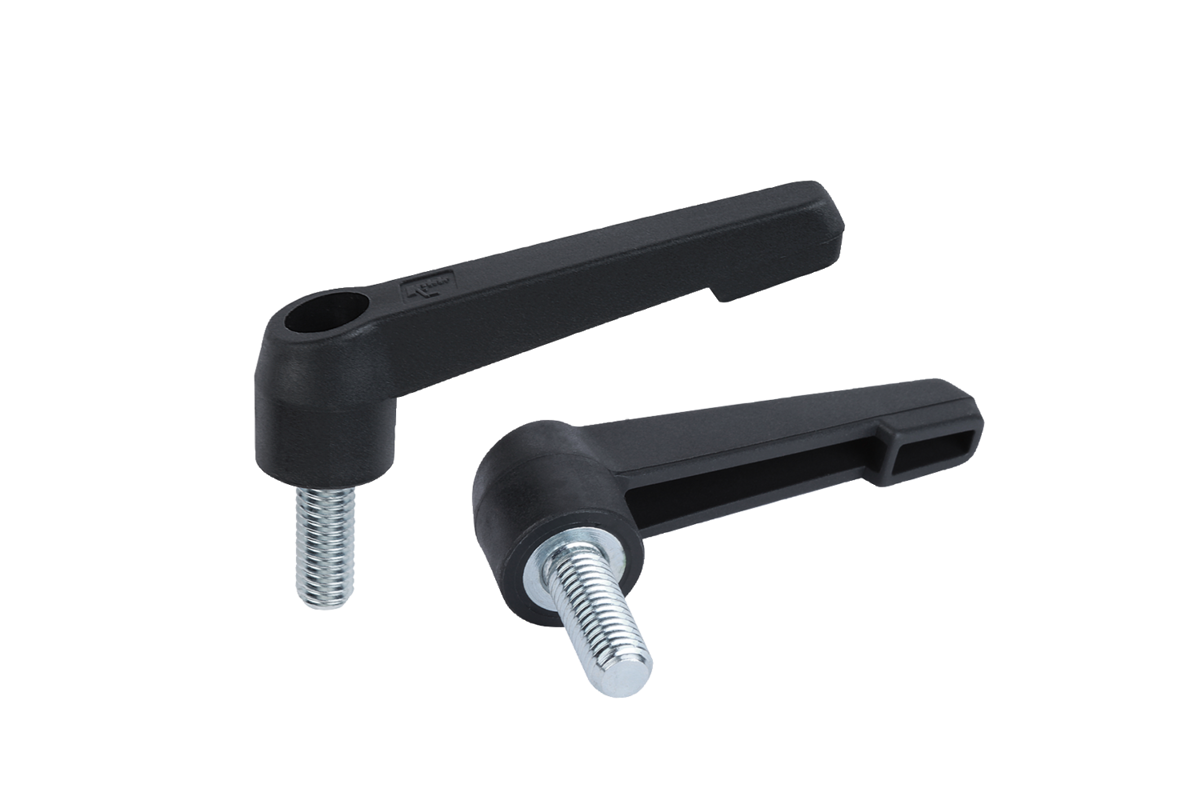 Le maniglie a leva non regolabili possono essere utilizzate per semplici funzioni di serraggio. Solitamente, occorre un certo spazio per poter girare la leva di serraggio di 360°.