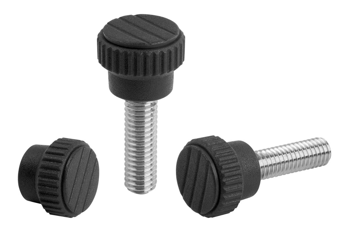 Pomelli zigrinati in plastica metal detectable con filettatura esterna