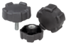 Pomello a lobi in plastica, inserto filettato in acciaio con filettatura esterna