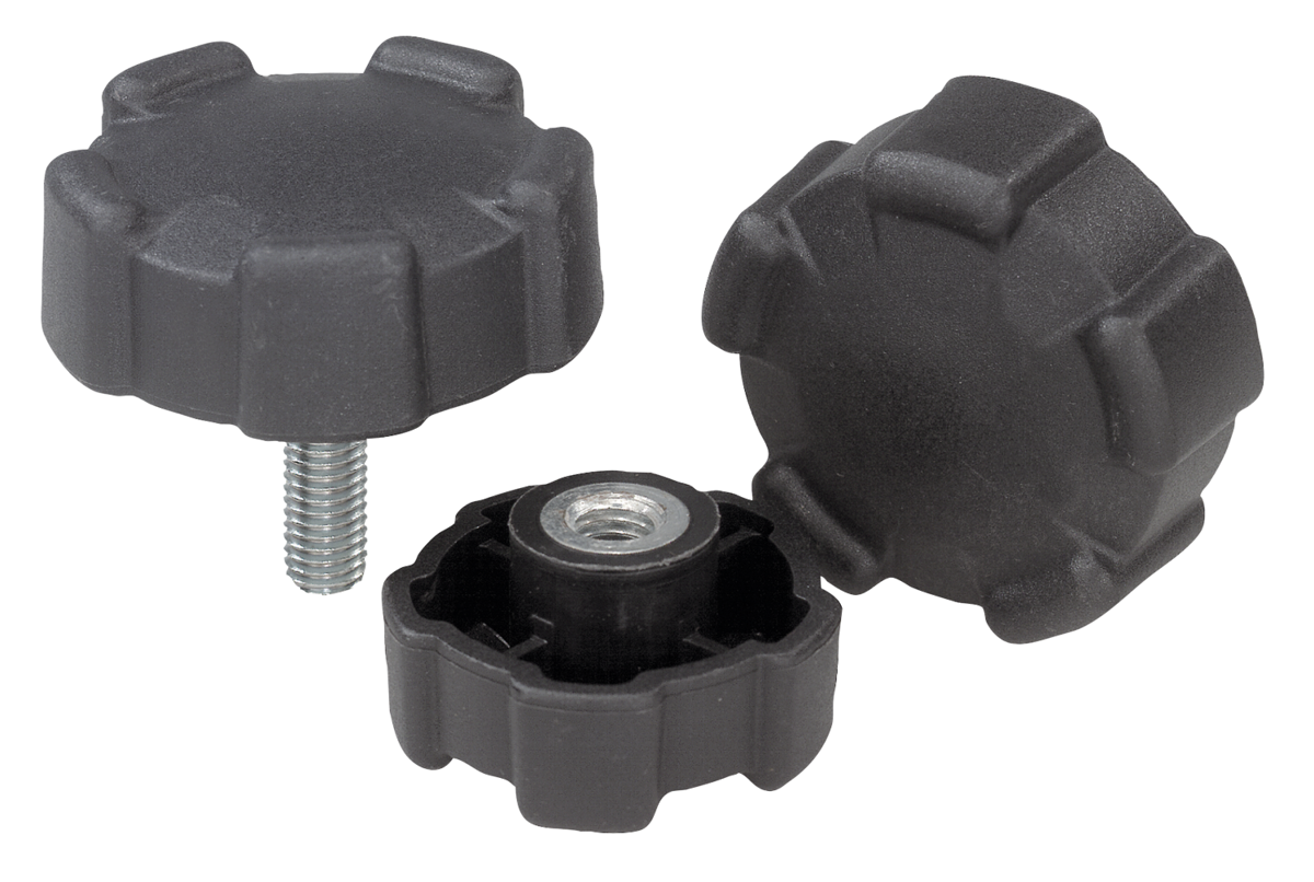 Pomello a lobi in plastica, inserto filettato in ottone o acciaio con filettatura interna