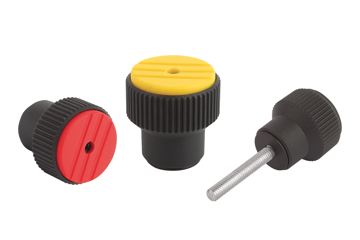 Pomello zigrinato con coppia di serraggio regolabile con filettatura interna