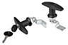 Serratura girevole con impugnatura a T. Inseribile a destra o a sinistra con un percorso di chiusura di 90°.
