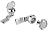 Serratura girevole di sicurezza con linguetta a molla. Inserita a destra o a sinistra con un percorso di chiusura di 90°. La serratura girevole può essere inserita pre-montata. Il dado di fissaggio è realizzato su un lato come dado di messa a terra con graffe.