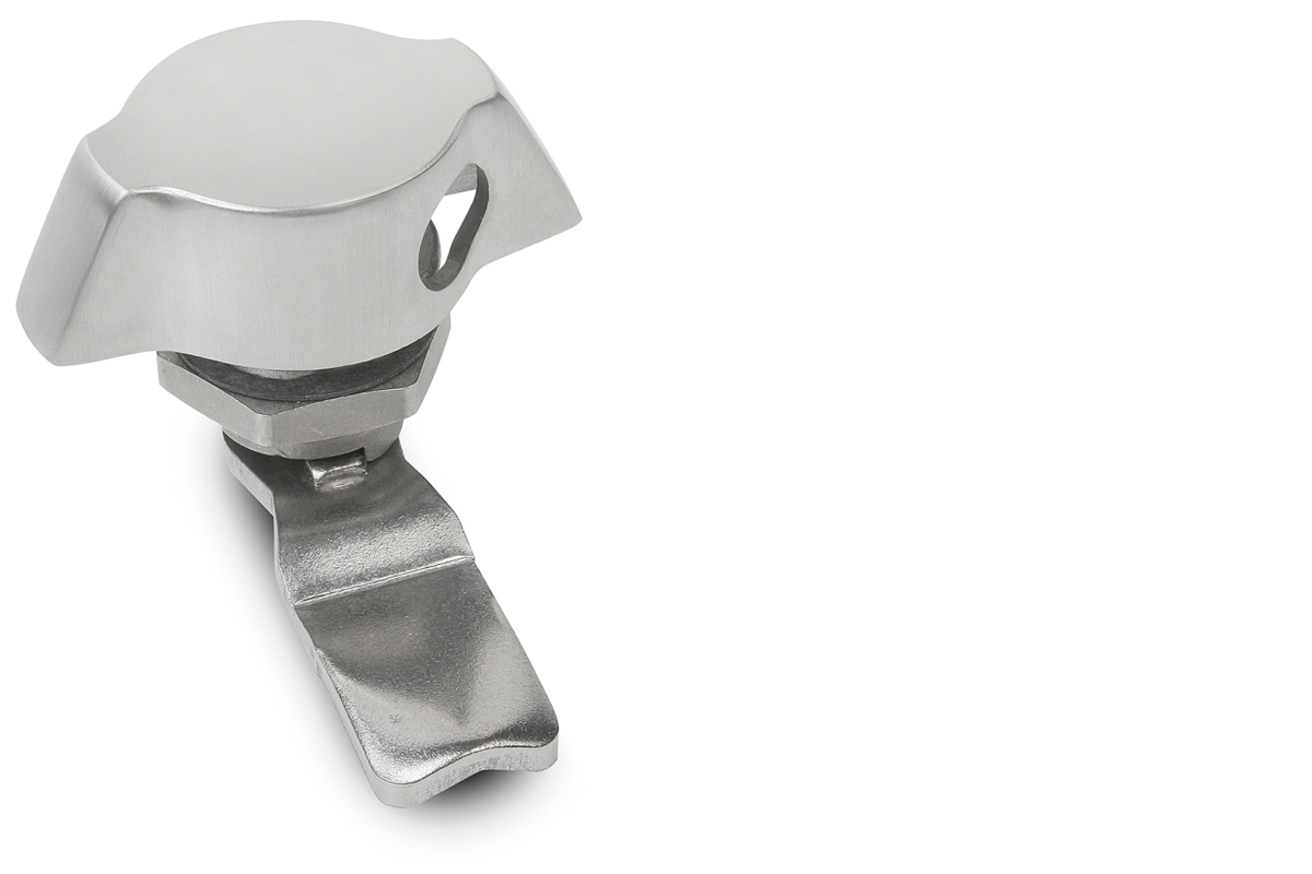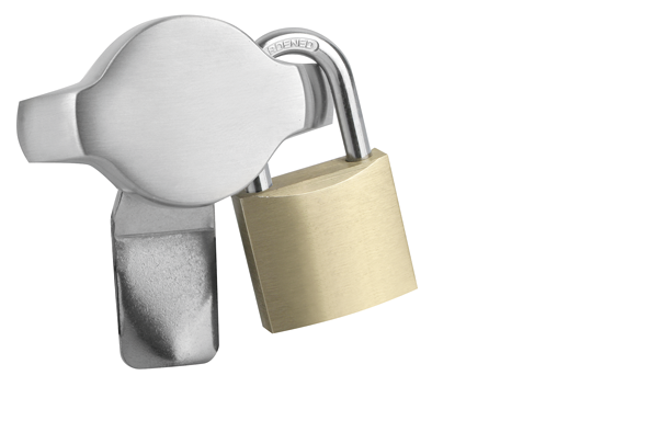 Serratura girevole con azionamento a leva. Inseribile a destra o a sinistra con un percorso di chiusura di 90°. La serratura girevole può essere inserita pre-montata.