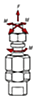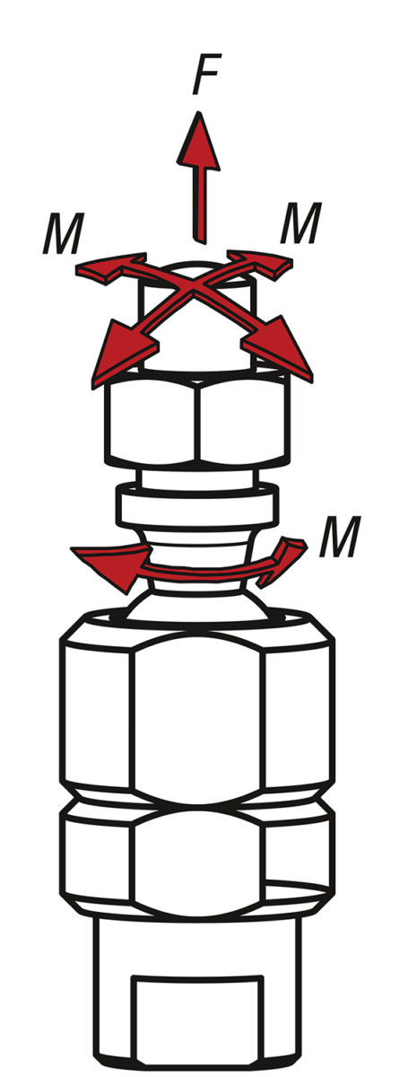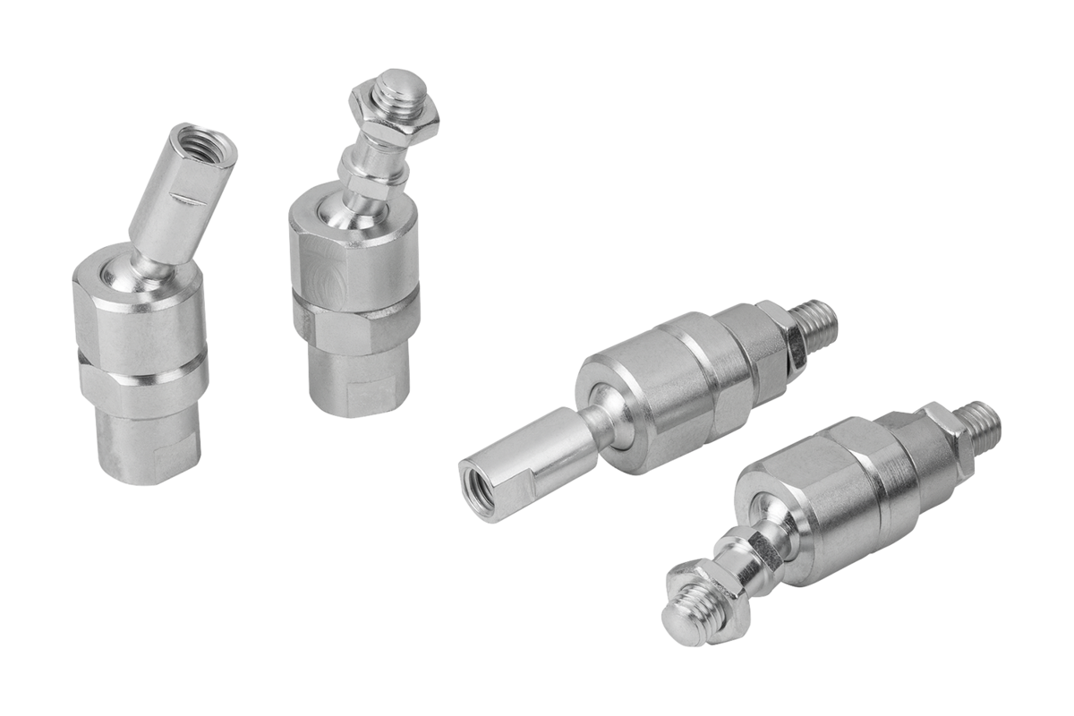 Giunto assiale adeguato all'assorbimento delle forze di trazione. Con il dado di bloccaggio è possibile regolare la mobilità della sfera o bloccarla completamente.
