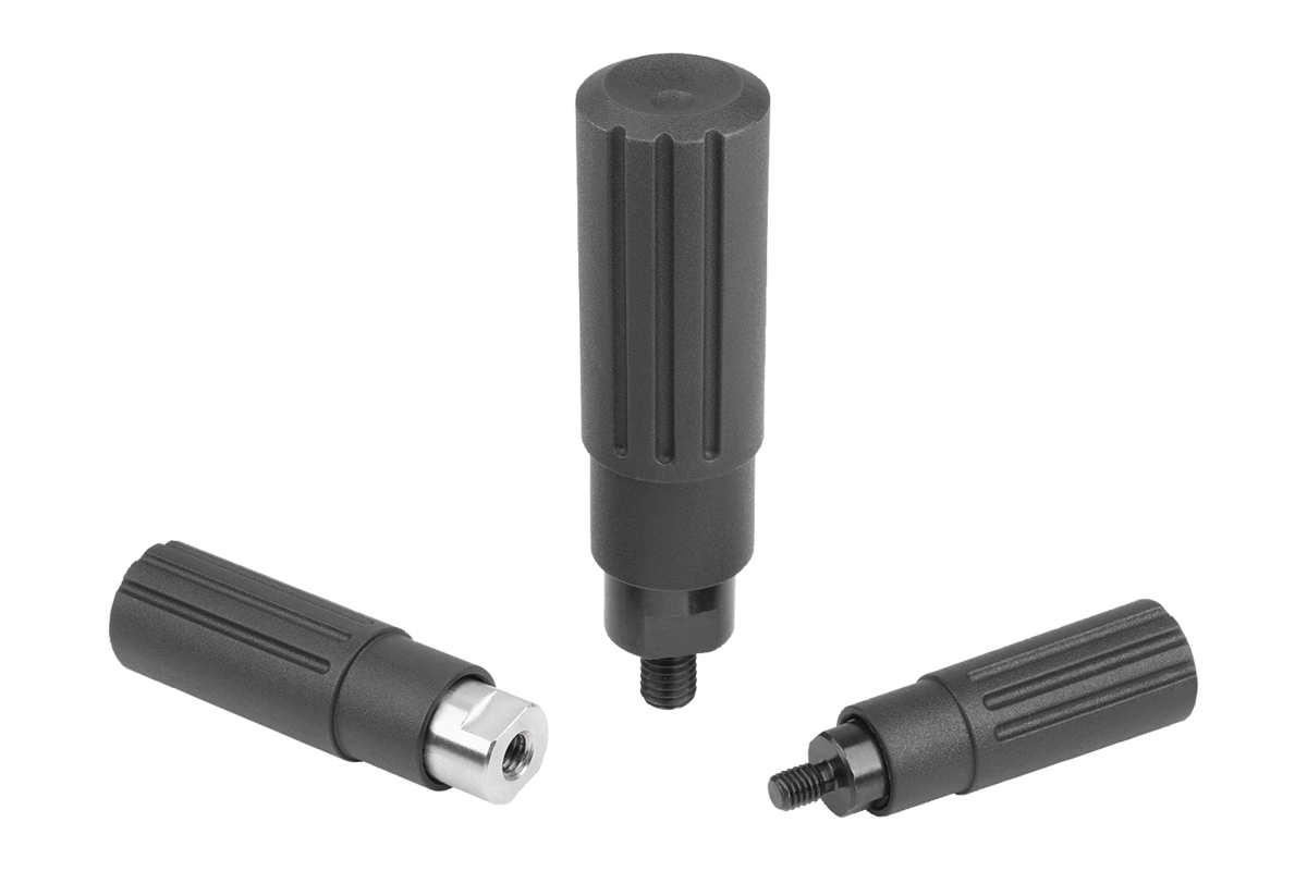 Impugnature cilindriche in plastica girevoli con filettatura esterna