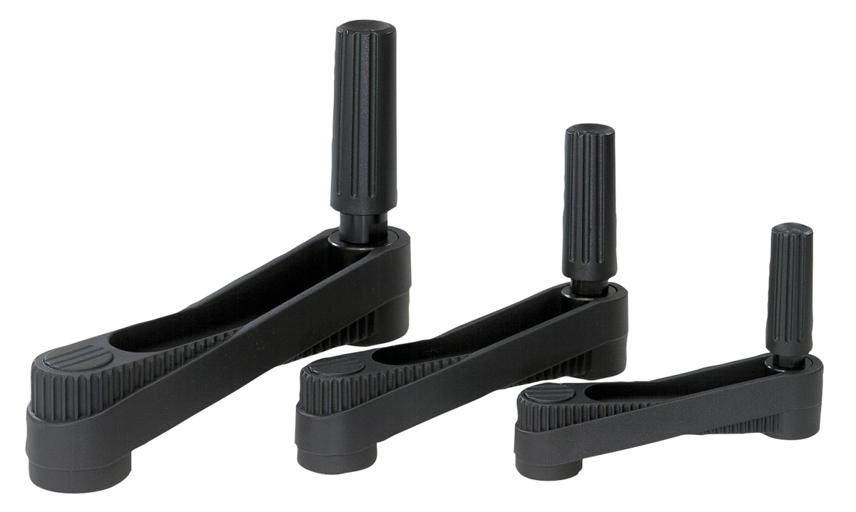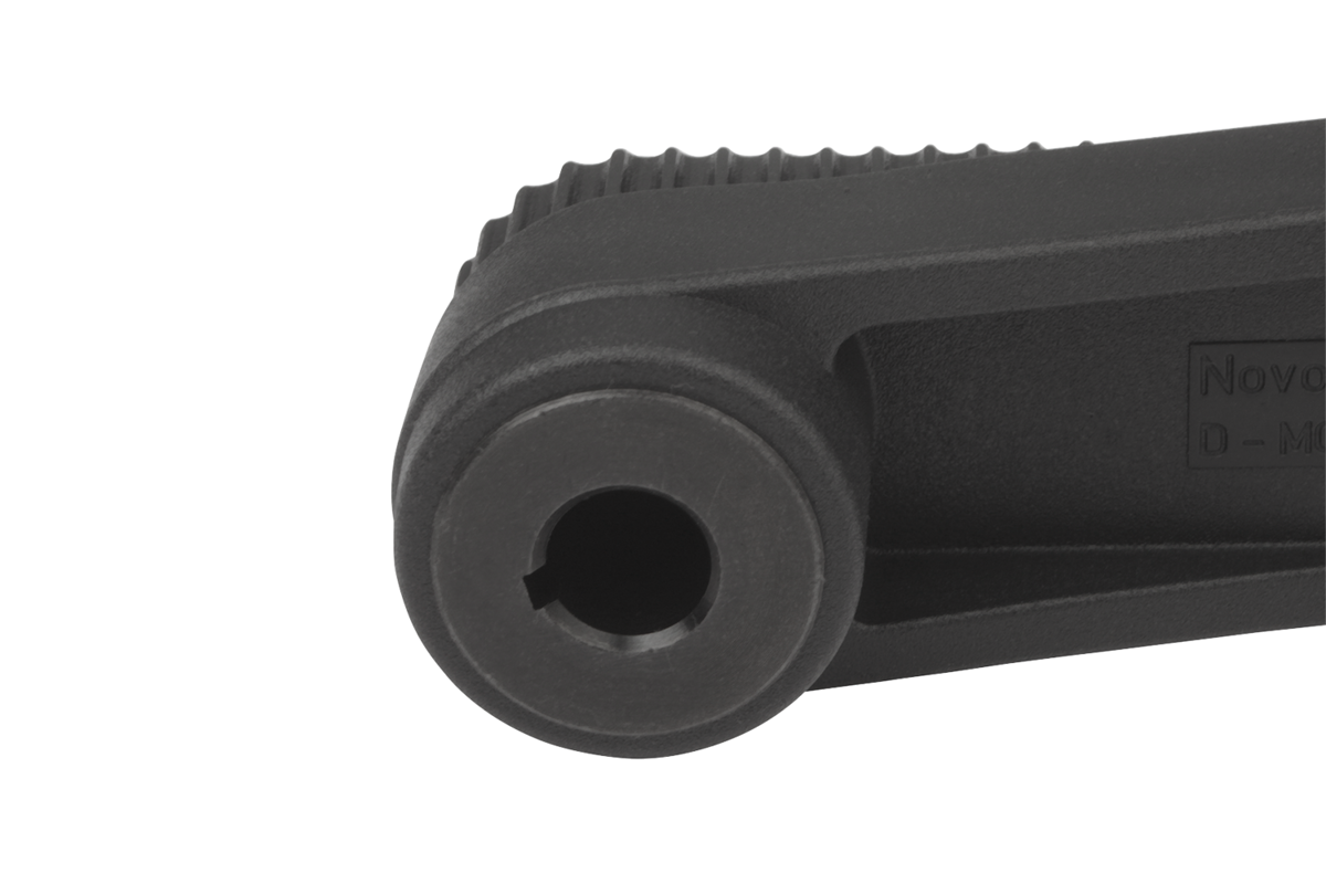 Le manovelle possono essere fissate a un albero in senso assiale, attraverso il collegamento con linguetta di aggiustamento, con spinatura trasversale o con una vite a testa cilindrica DIN 6912 e una rondella DIN 7349.