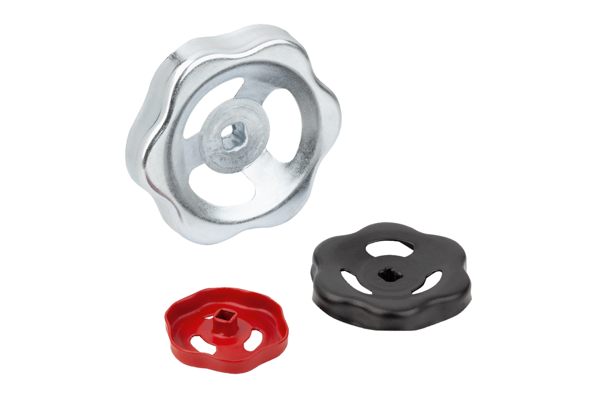 Particolarmente adatto per le valvole di arresto. I volantini sono realizzati in un unico pezzo. Il volantino è rinforzato nella zona del mozzo mediante uno speciale processo di formatura. Il mozzo di forma conica semplifica il montaggio e garantisce un inserimento in sede sicuro e solido sul perno quadro.