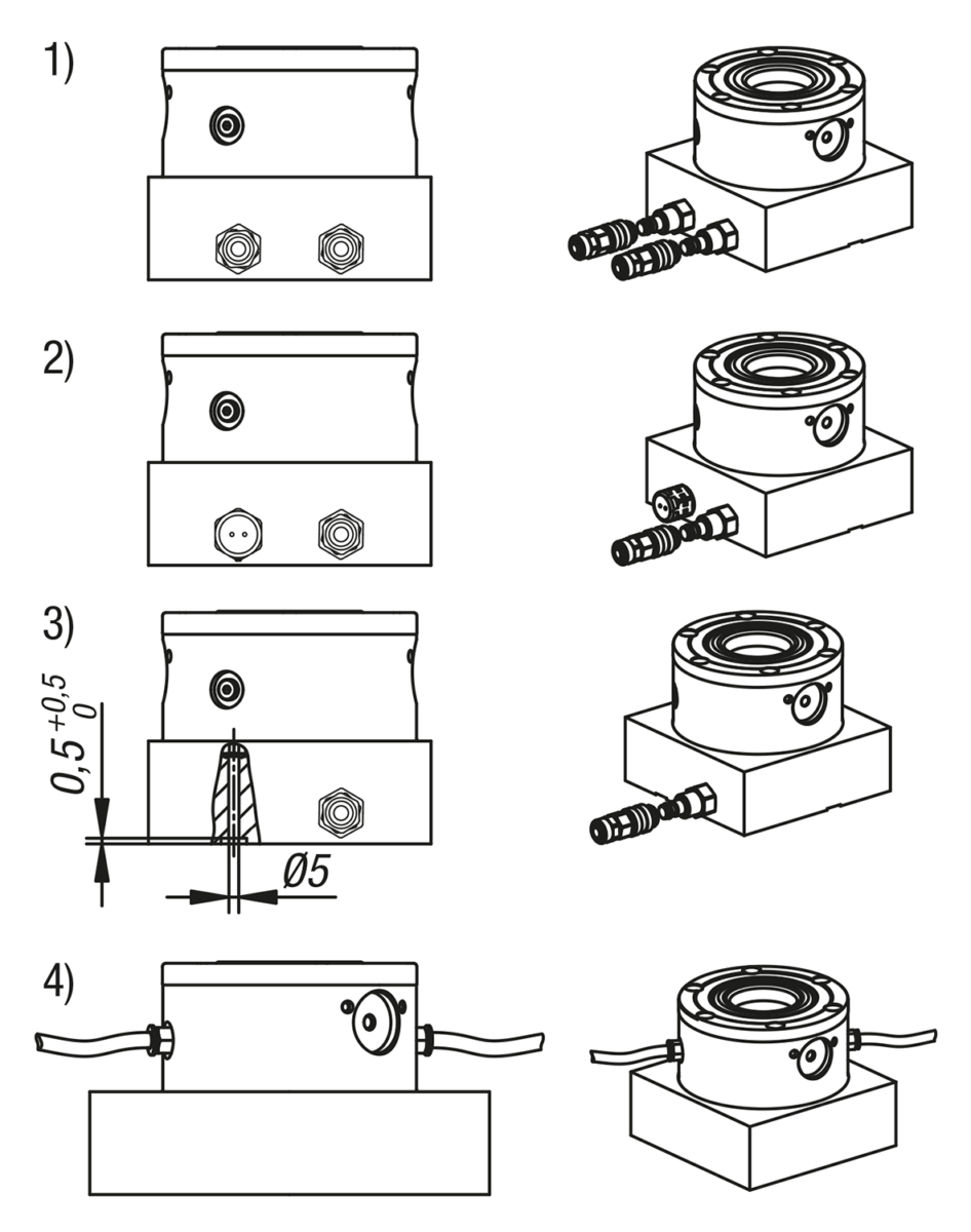 4) In caso di comando laterale del modulo di serraggio, in questo punto deve essere inserita una vite di sfiato.