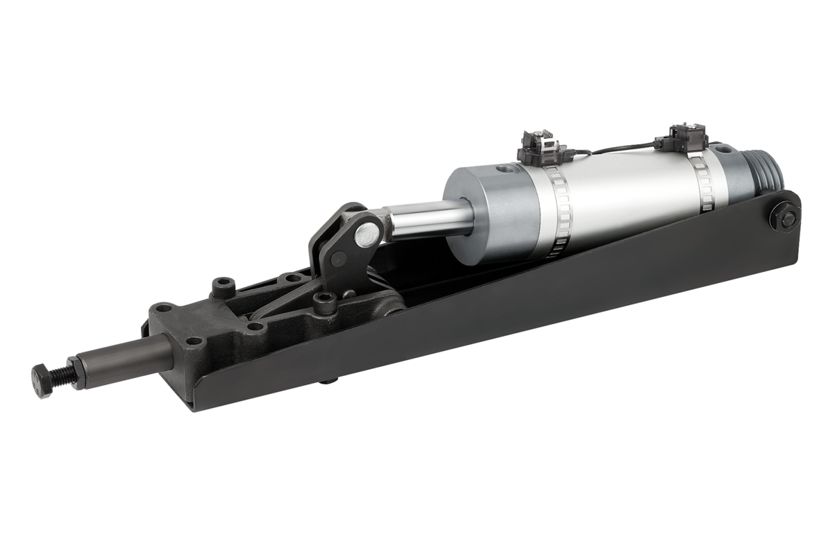 A doppio effetto senza ammortizzatore di fine corsa e equipaggiato con due interruttori di prossimità reed con indicatore LED.