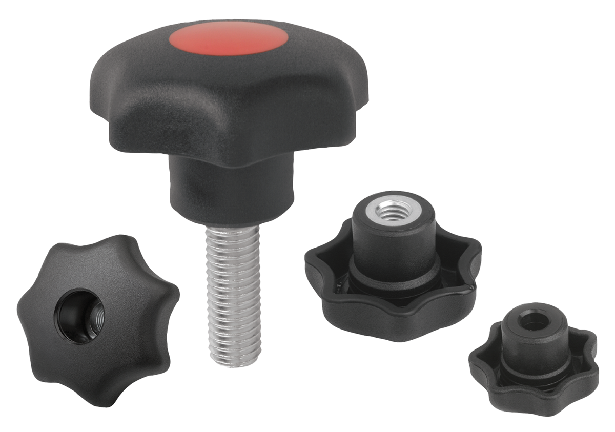 Manopole a lobi simili a DIN 6336, esagono, forma S